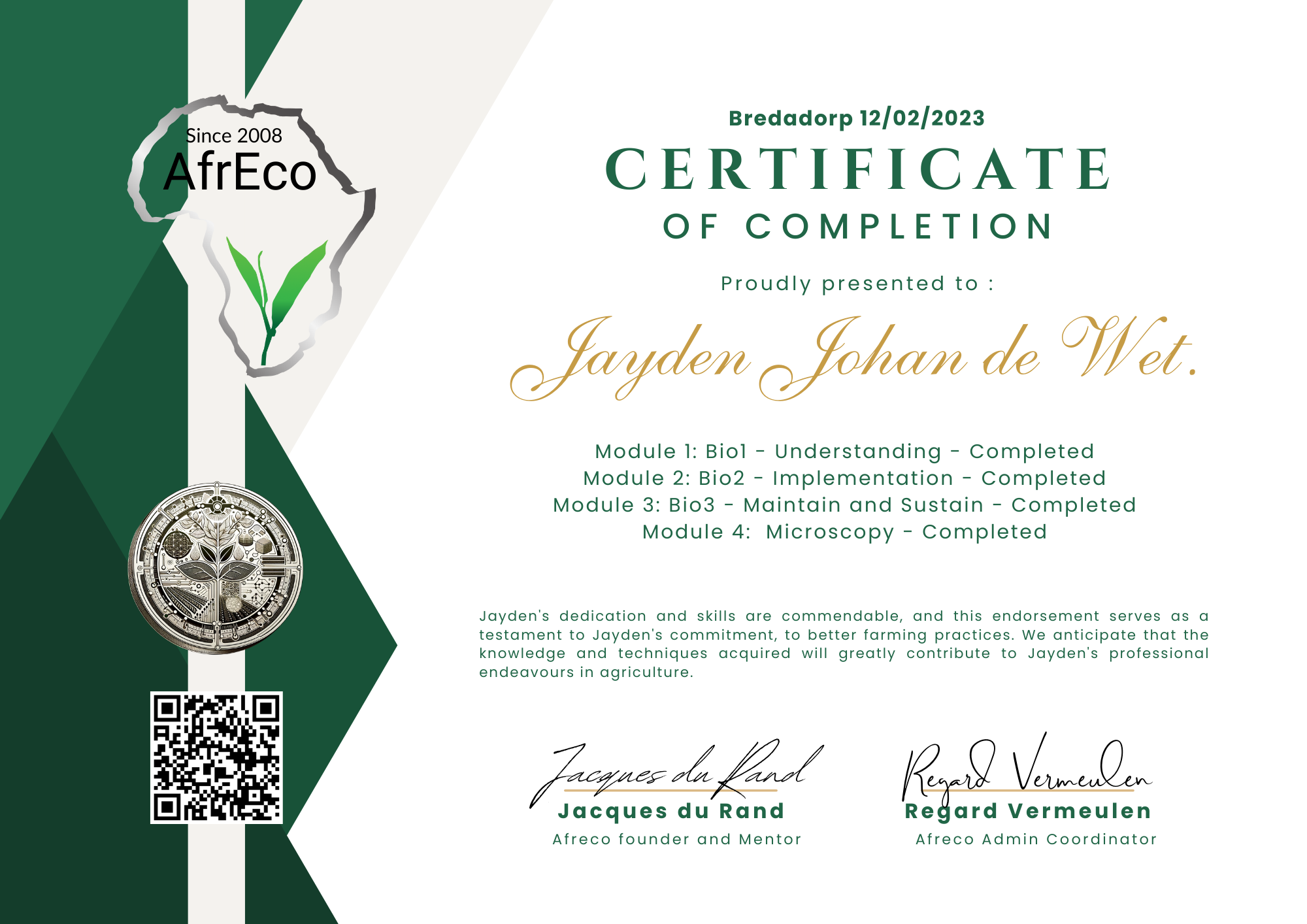 - Jayden Johan de Wet. 12.02.2023 (certificate)